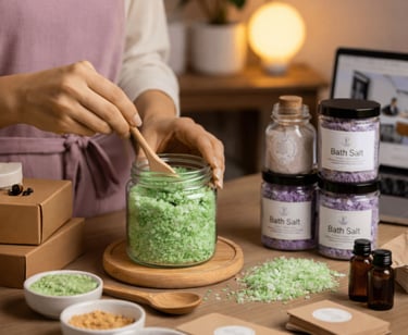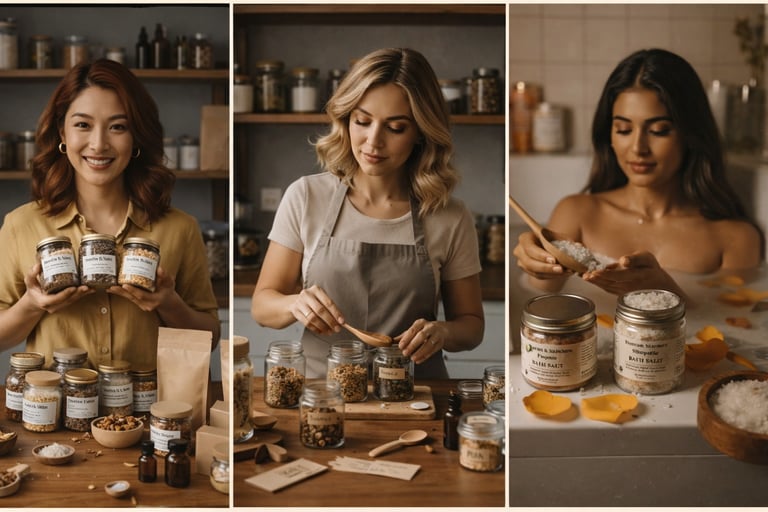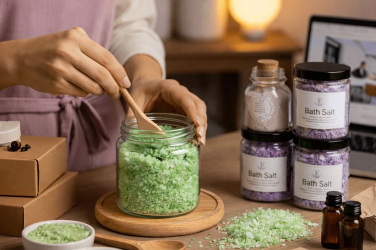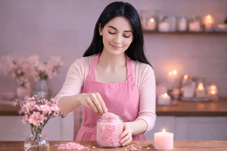 Cada vez más mujeres están aprendiendo a elaborar sales de baño terapéuticas artesanales y convirtiendo esta habilidad en un emprendimiento rentable.
